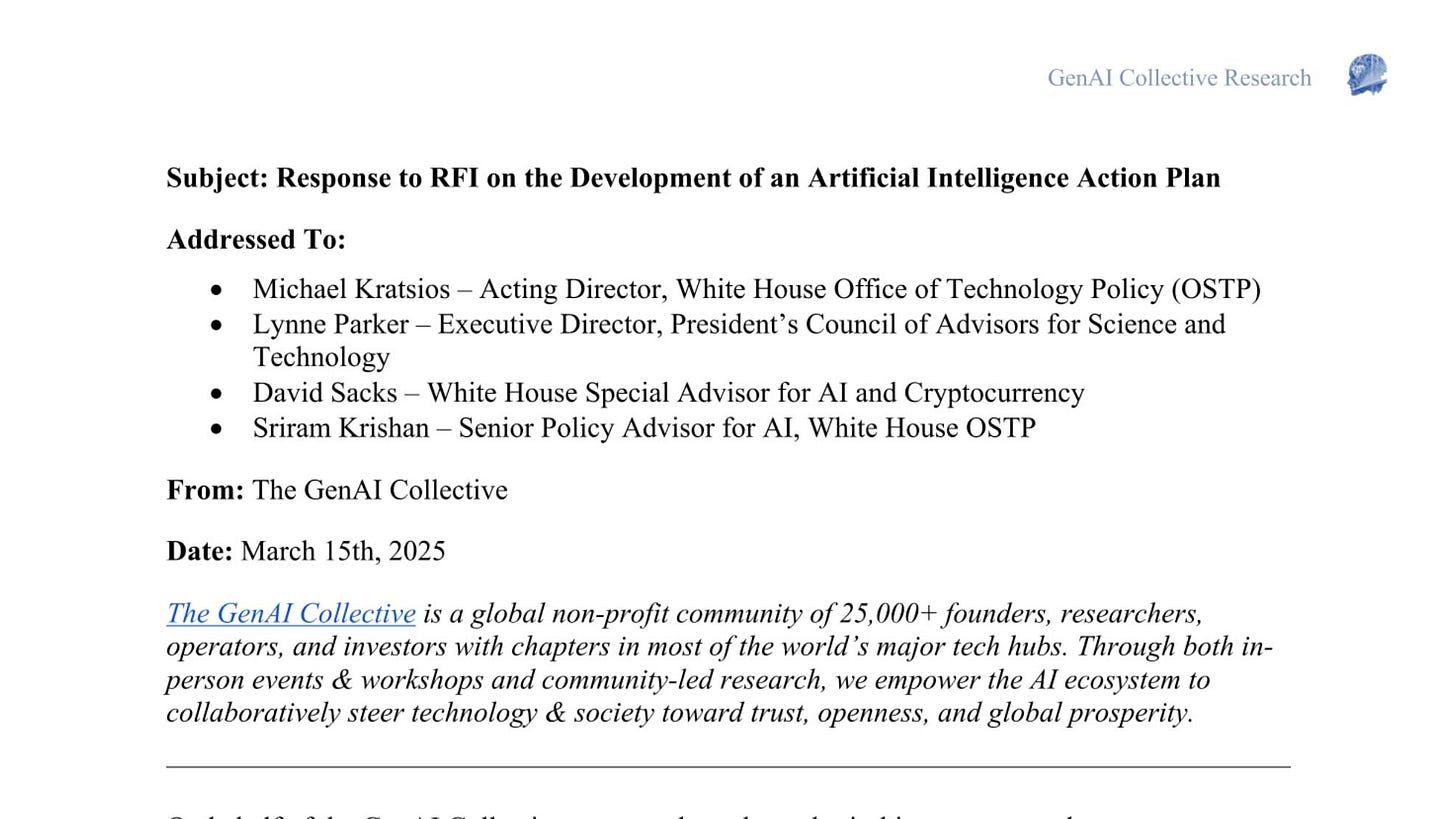 Publishing our community’s response to the US AI Action Plan – shaping policy together 🇺🇸 (LinkedIn)