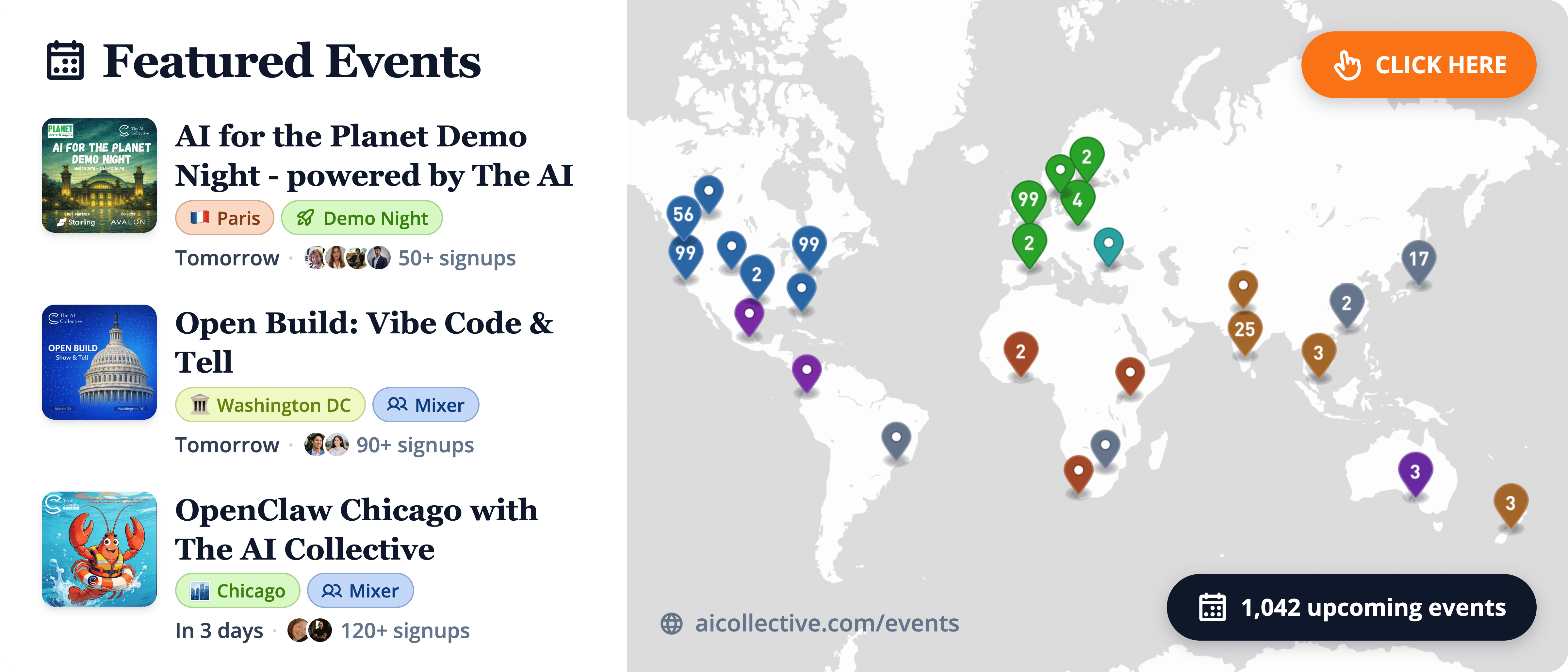 Head over to our Events Portal to get the latest on upcoming AI Collective events near you. Search by city, date, or event format, and join thousands of builders at events across 180+ chapters on every continent (except Antarctica, for now).