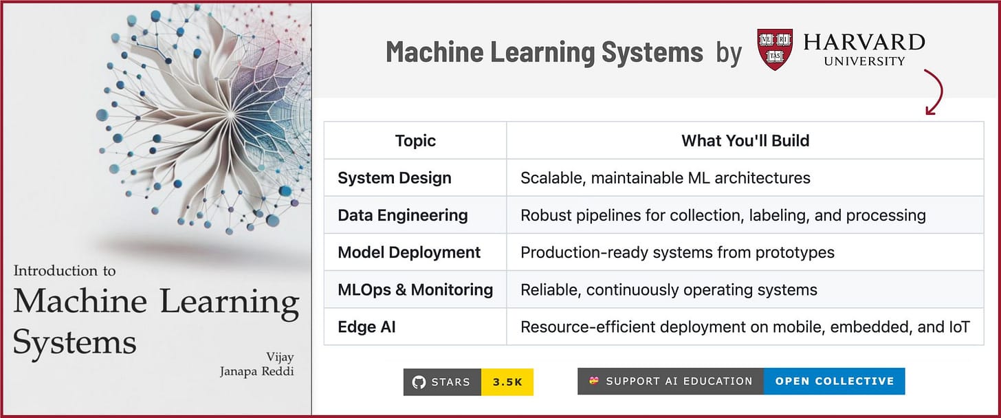 Machine Learning Systems by Prof. Vijay Janapa Reddi teaches what actually matters when taking ML from notebook to real-world system.