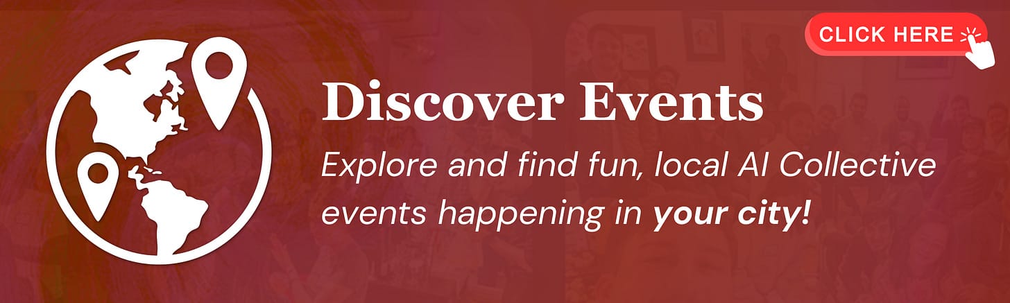 Head over to our Events Portal to get the latest on upcoming AI Collective events near you. Search by city, date, or event format, and join thousands of builders at events across 100+ chapters on every continent (except Antarctica, for now).