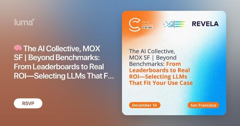 Tomorrow, December 10, Beyond Benchmarks is bringing The AI Collective and MOX SF together for a focused session on why leaderboard toppers rarely succeed in production. Sinan Ozdemir and Kevin Miao will show how public metrics drift from real workflows, why they miss the signals that matter, and what it takes to evaluate models against the constraints teams actually face when shipping AI systems.