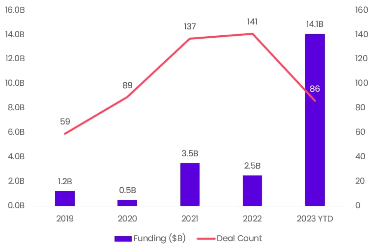 Global VC Investment Activity in the Generative AI Sector, 2019- 2023 (as of June 30, 2023)