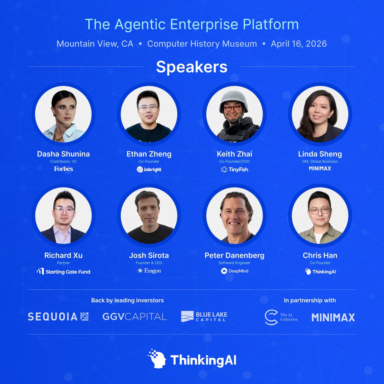 The event brings together leaders from Google DeepMind, MiniMax, and leading AI startups and investors to discuss the future of agentic enterprise systems.